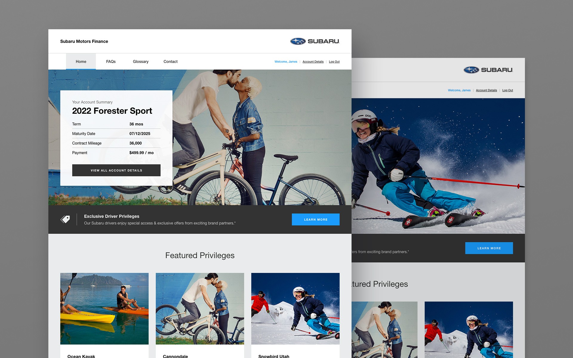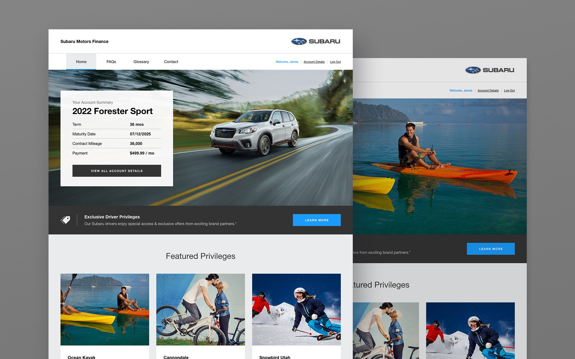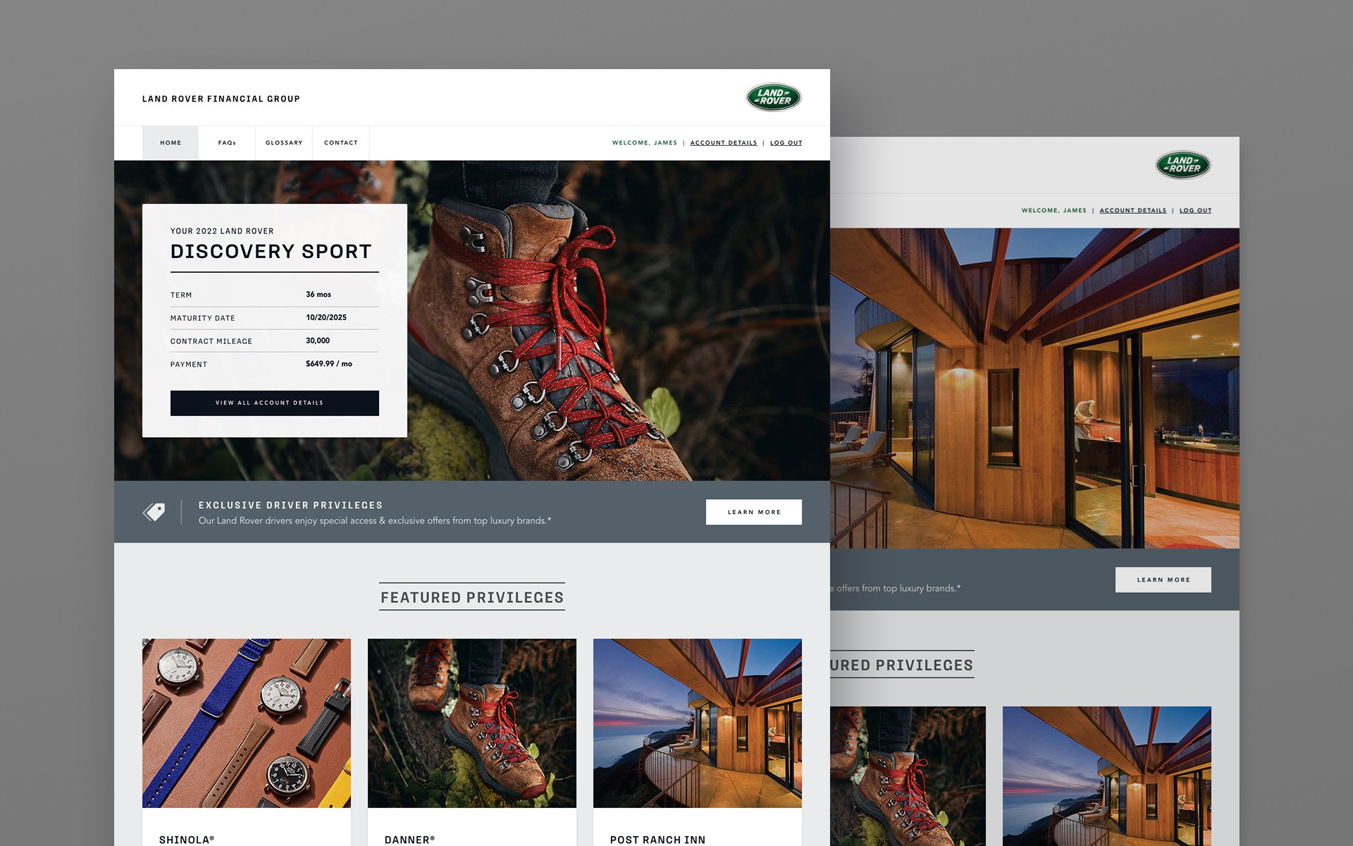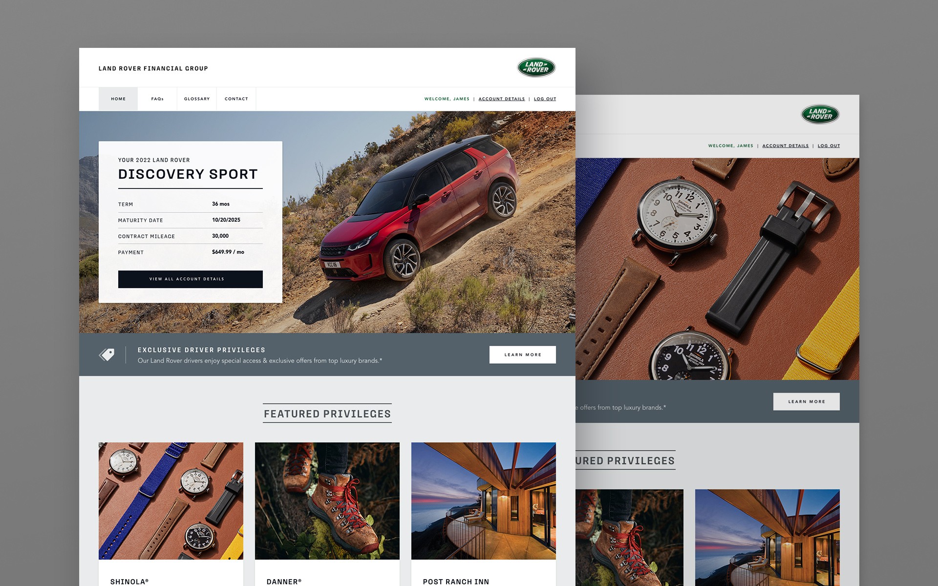 Chase Auto was looking to enhance the overall user experience for many of their automotive-finance users. They wanted an ongoing solution that would continuously deliver added value for drivers of select automotive brands (within the Chase Auto portfolio), including Land Rover and Subaru. HMG was challenged to design a solution that would integrate with the existing Chase Auto portal while delivering unique, branded experiences – in the most efficient manner possible – for each automotive brand partner.